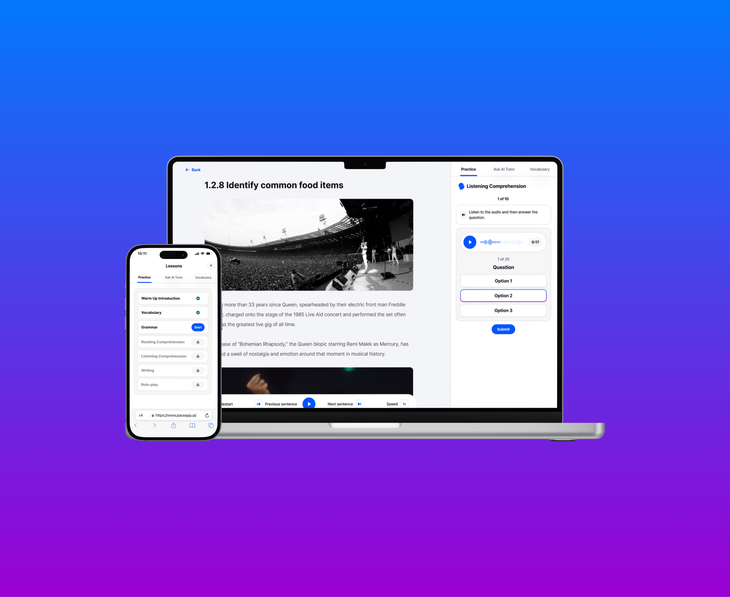 Pace AI is one step closer to making English learning more accessible for all. This powerful, trained AI is always there by helping learners continue their education, complete real-world role plays, improve their pronunciation, and more.